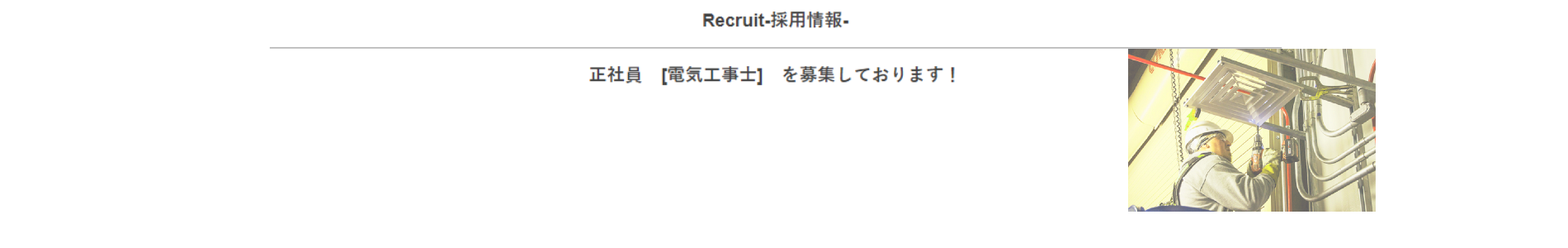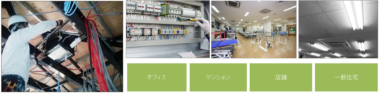 法人・個人のお客様を対象に、生駒市・奈良市を中心として電気工事を行っております。オフィスやスーパー、学校や病院、工場や大型商業施設など幅広き設備に携わり、電気設備工事・情報通信工事を中心とした工事を手掛けております。